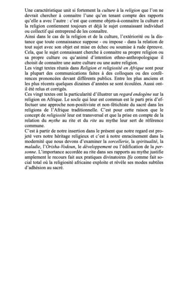 Religion et religiosité en AfriqueTable des matièresAcheterAvant-propos Navigation de commentairePrécédent Onglet précédent La Restitution
